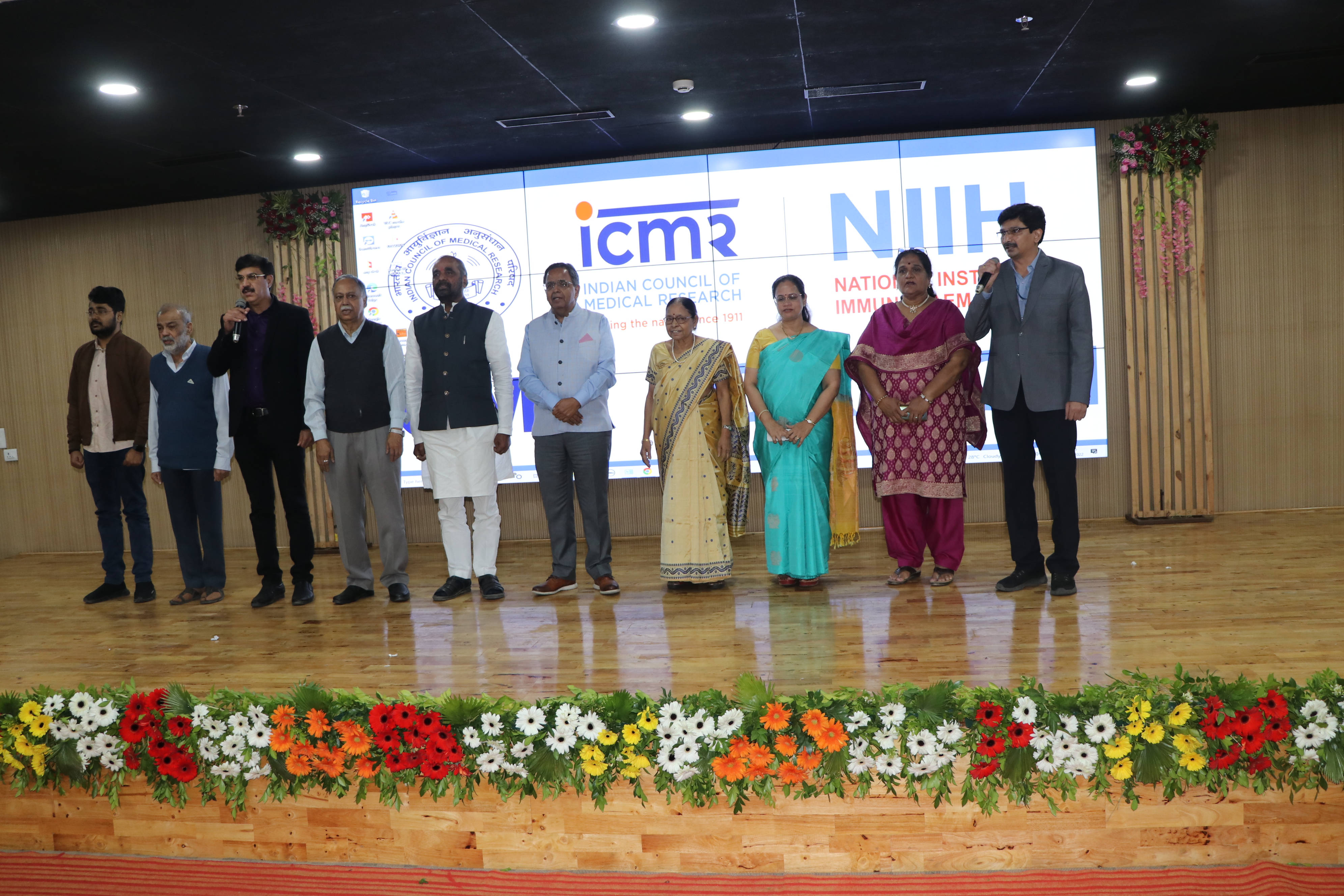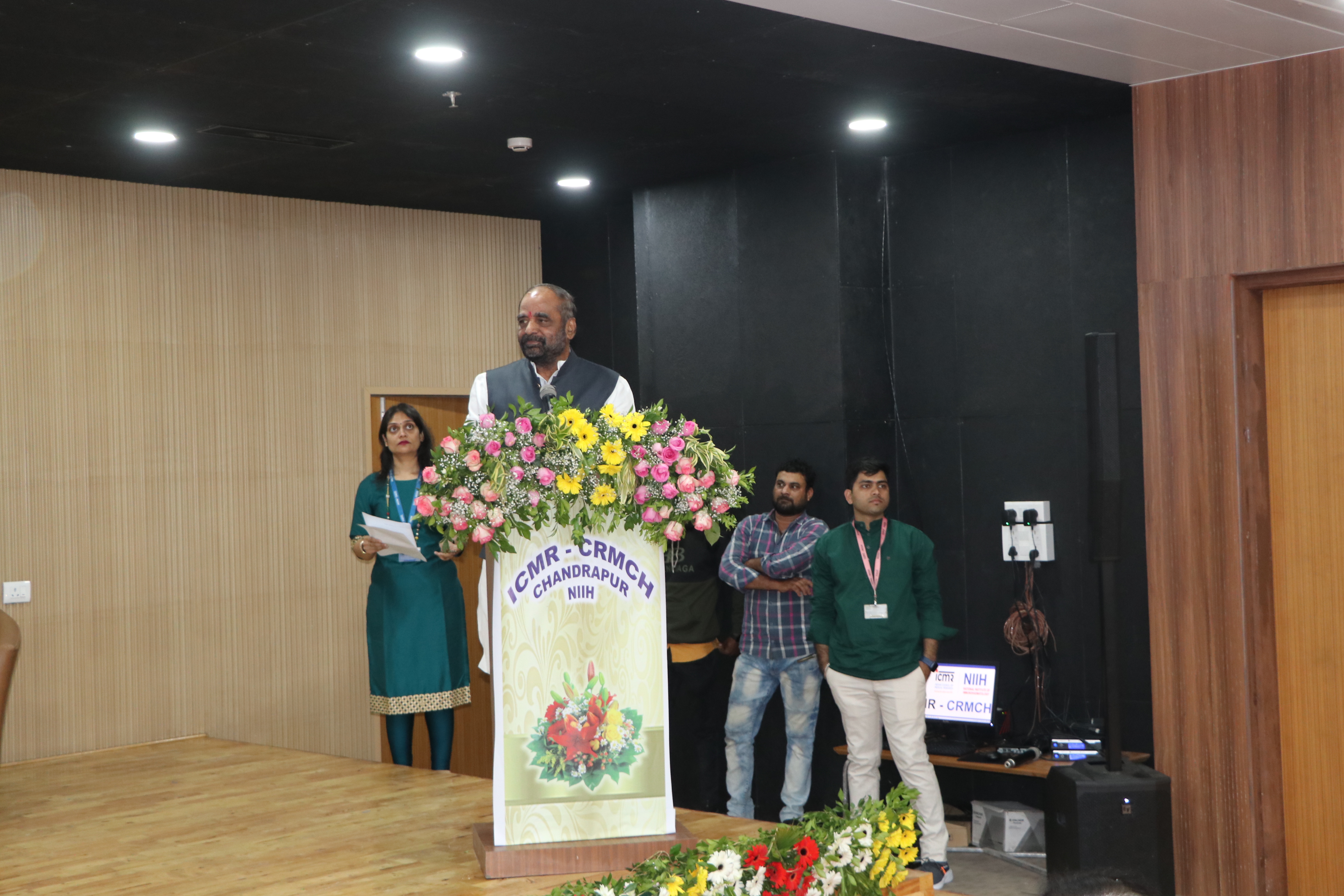 National anthem during Post Inauguration Ceremony at ICMR-CRMCH Chandrapur with Shri Hansraj Ahir, Chairman of National Commission of Backward Classes and Former Union Minister of State and Home Affairs and Dr.Narinder Mehra, Indian Immunologist, Head SRL Limited, Gurgoan. Former Dean of AIIMS, New Delhi, along with all Ex-Directors of ICMR-NIIH and PWD Staff on 11th December 2022.