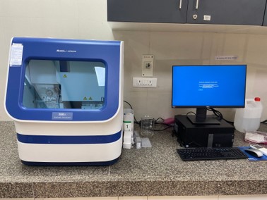 | Fully automated clinical chemistry analyzers (a & b) are available for biochemical parameter testing of patient serum and urine samples. The tests include Liver Function Tests (LFT), Kidny Function Tests (KFT), Complete lipid profile and micronutrients Assays. | ||